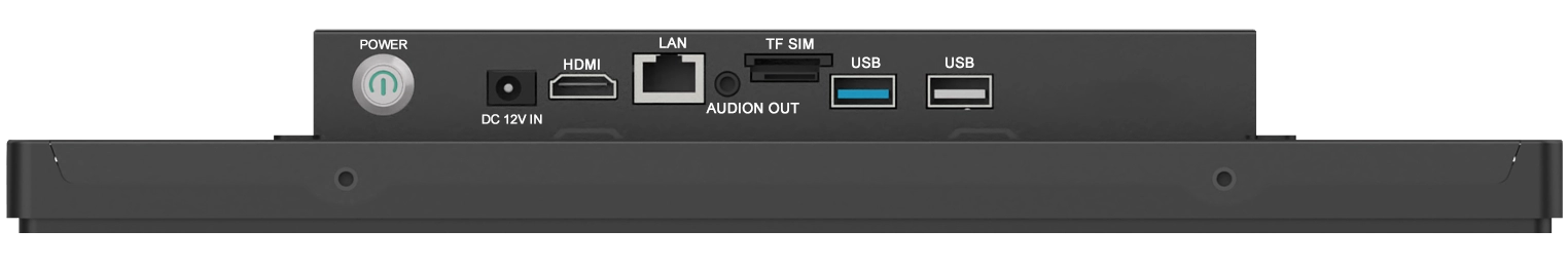 Anschlüsse: HDMI, 12-V-DC-Eingang, LAN, TF-Kartensteckplatz, Stromanschluss, Audioausgang und USB