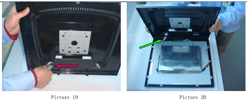 3. Bitte lösen Sie auch die Schrauben im Inneren des Monitors.