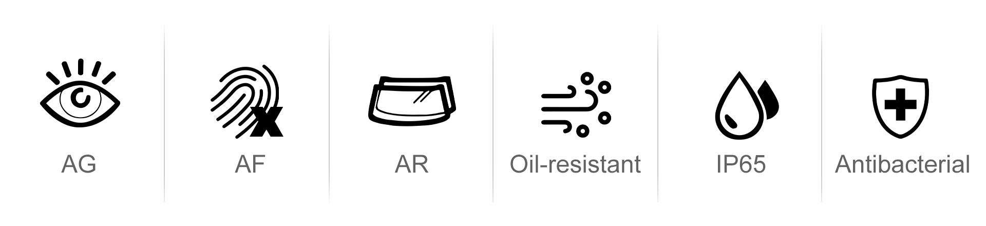 Entsprechend den Eigenschaften der verschiedenen Branchen der Kunden kann die Schutzleistung der Produkte in speziellen Umgebungen so angepasst werden, dass sie für verschiedene Anwendungen in rauen Umgebungen geeignet ist, z. B. AG, AF, AR, Ölbeständigkeit und antibakterielle Eigenschaften.